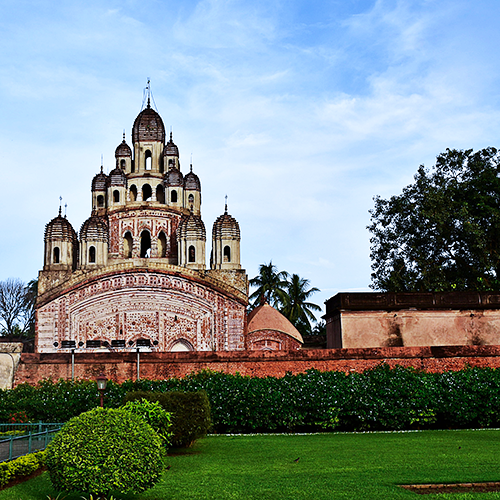 Located within the famous Rajbari Complex of Ambika Kalna, the Krishnachandraji Temple is about 2km from the Kalna Railway Station. Pancha-Vimsati Ratna (25-Pinnacled) temple structure is extremely rare in India, and the Krishnachandraji Temple is one of only five such temples found in West Bengal. Due to its magnificent architecture, this temple draws thousands of visitors each year. The terracotta panels on the temple wall illustrate various stories from Lord Krishna’s life, such as Krishna’s birth and escape, the killing of Putana, the killing of Bakasur, Krishna's leaving for Mathura, and so on. However, the Krishnachndraji Temple is particularly famous for depicting the contemporary society of the 18th-century Bengal through its intricate artwork. Along with religious tales, the terracotta panels show everyday stories, such as European soldiers hunting with guns.